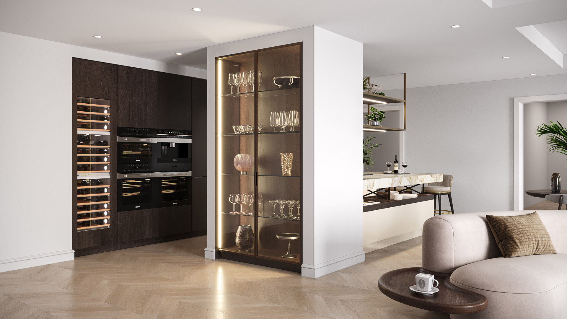At Poggenpohl, we offer elegant solutions that enhance the broken plan philosophy. Glass-fronted display cabinets, called ‘Showcase’ act as both visual partitions and focal points. Use them to gently divide your kitchen from living areas while displaying curated collections.