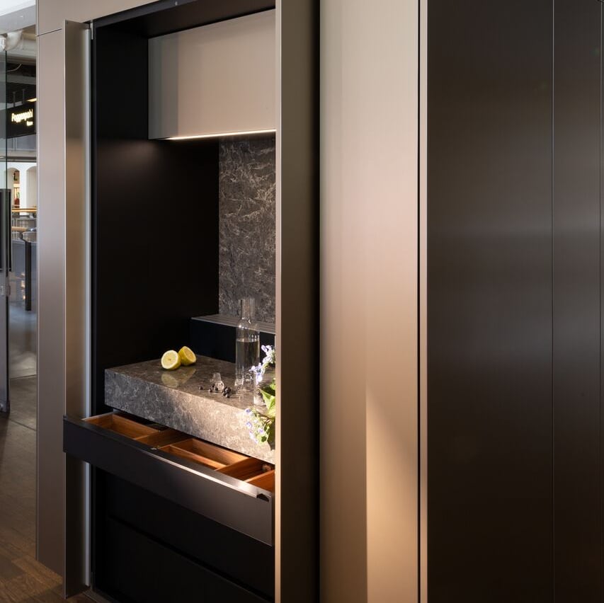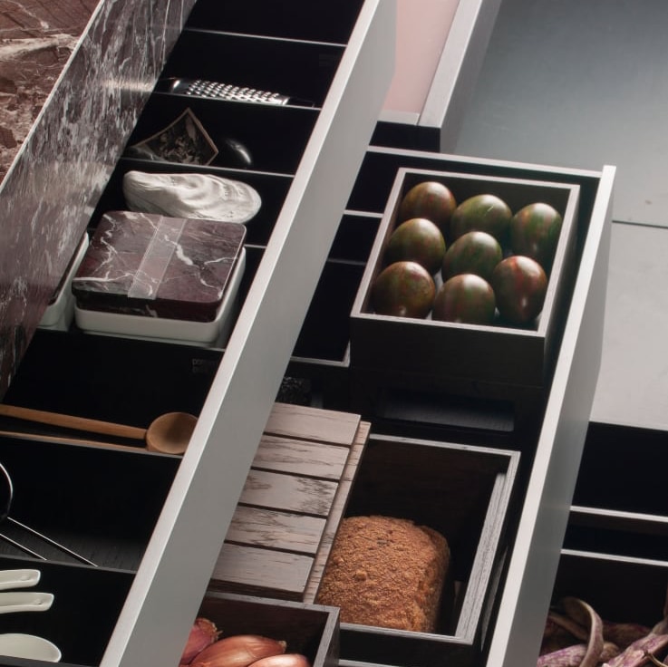 Schönheit und Sinn erschließen sich manchmal erst in der Beschäftigung mit Details. Poggenpohl plant nicht nur Architektur und Küchenräume, sondern gestaltet mit der gleichen Sorgfalt und handwerklichen Exzellenz auch das Innere der Möbel.