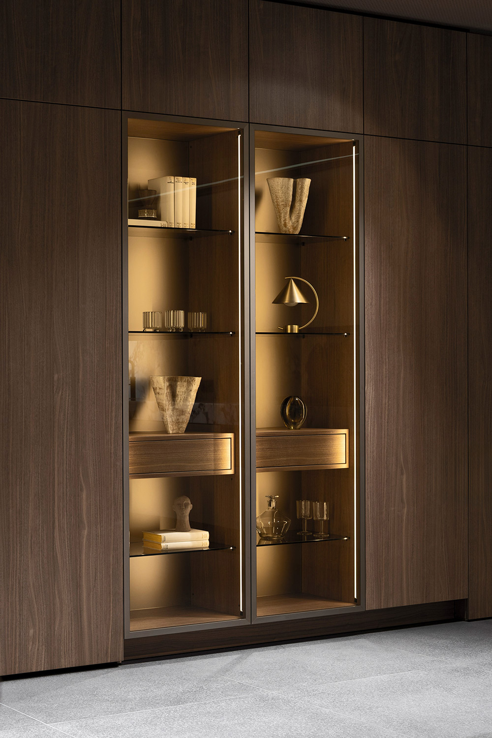 Like a glass treasure chest, the new Showcase series offers a protected space for special objects. Exquisite collections and beloved everyday things find their place behind the glass door with subdued LED lighting.