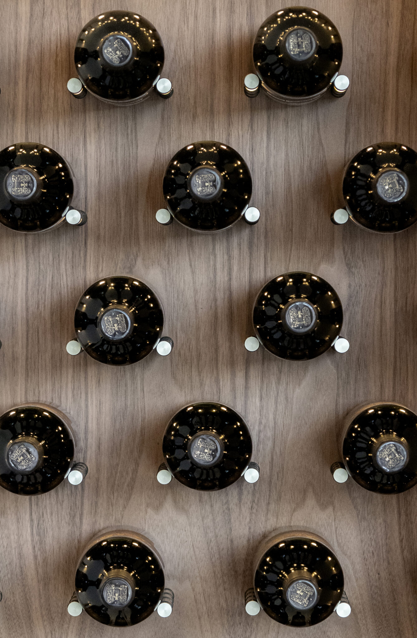 The ONE A Wine stores up to 68 bottles as standard, yet its modular system allows expansion both vertically and horizontally, always maintaining a perfectly balanced architectural grid. At its core are custom-milled aluminium pins, each embedded with a micro-diode that illuminates the label without glare. The subtle, dimmable lighting can be tailored to set the mood, while discreet O-rings hold every bottle in silence and stability.