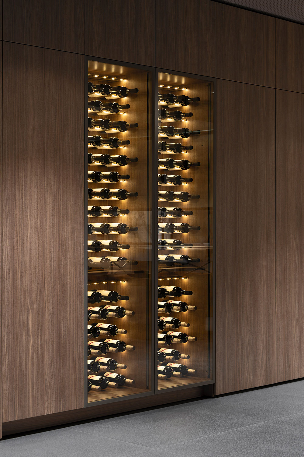 Seamlessly built into our showcase cabinets, the ONE A Wine combines luxury wine storage with minimalist design aesthetics. The system harmonizes with delicate 25 mm door frames and a selection of glass fronts – from clear to tinted bronze, anthracite, or deep black – offering an unobstructed view of your wine collection. Integrated indirect lighting enhances the cabinet’s sculptural presence, transforming wine storage into an elegant design statement